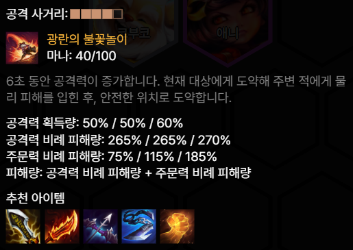 - 공격력 비례 피해량: 265% / 265% / 270%