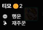 티모의 시너지는 '행운'과 '재주꾼'으로 행운 시너지를 갈 때 서브 시너지로 무엇을 갈지 선택되는 시너지입니다.