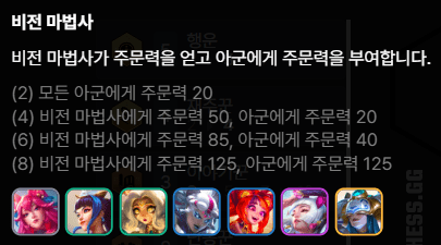 비전 마법사 시너지는 비전 마법사와 아군에게 주문력을 부여합니다.