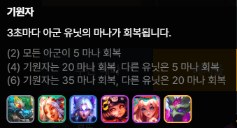 기원자 시너지의 효과는 3초마다 아군 유닛의 마나가 회복됩니다.