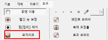 사진 편집 툴에서 '도구' 버튼 클릭 시 '모자이크' 기능이 있다는 것을 확인할 수 있습니다.