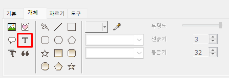 자막은 이미지 편집툴에서 '개체' 버튼 클릭 시 확인할 수 있습니다.