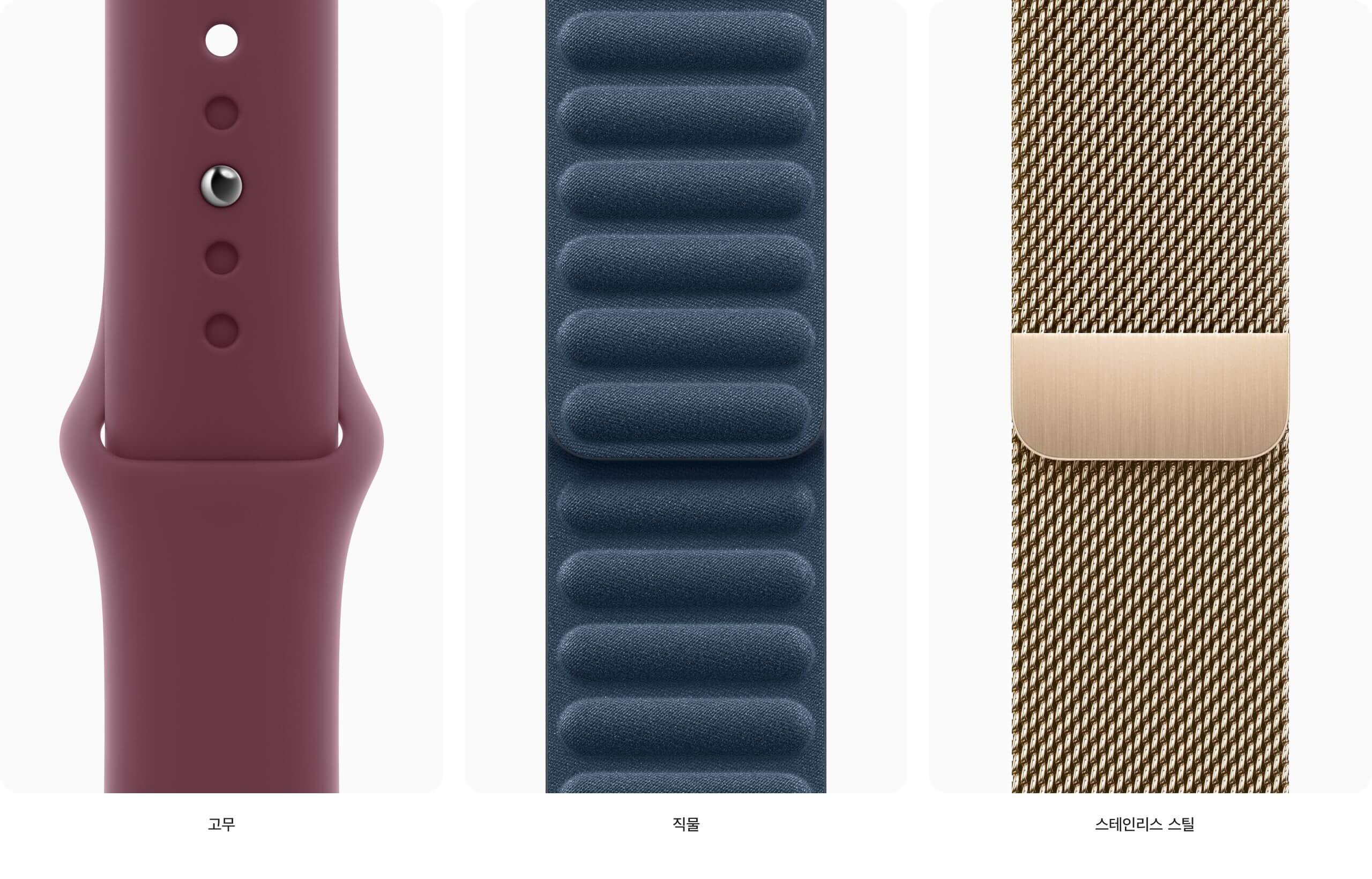 애플워치 시리즈의 밴트는 대분류로 고무, 직물, 스테인리스 스틸로 나누어집니다.