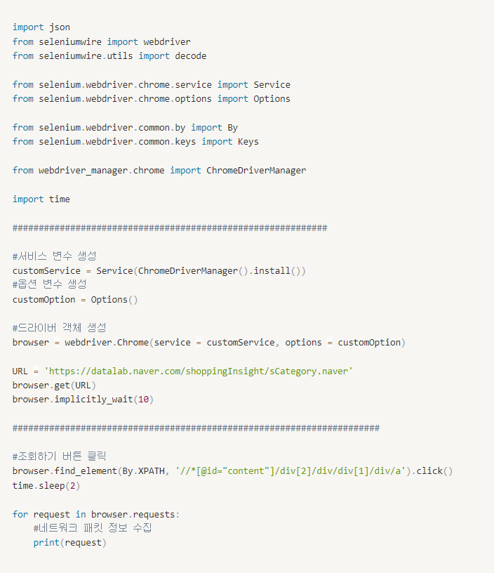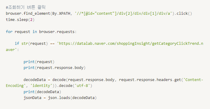 자바스크립트 그래프 값이 들어있는 'https://datalab.naver.com/shoppingInsight/getCategoryClickTrend.naver' 패킷 정보를 수집해야 합니다.