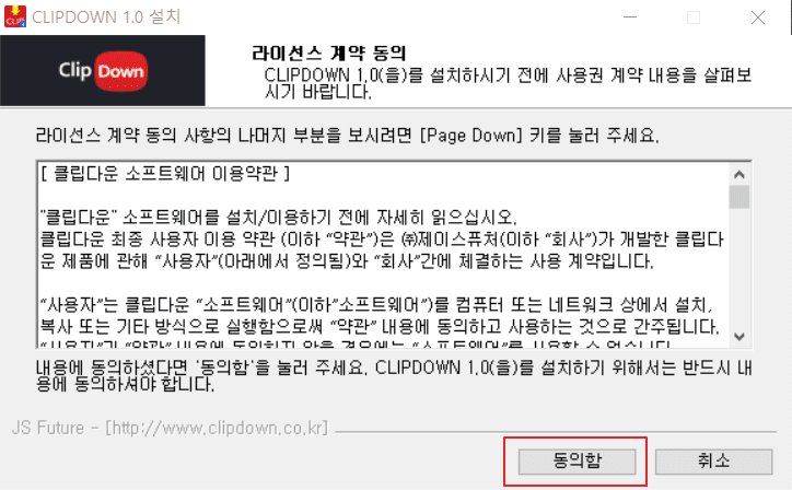 아래 링크를 통해 클립다운 공식 홈페이지에서 클립다운 프로그램을 다운로드합니다.