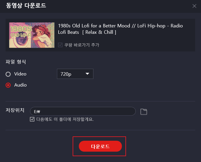 영상으로 다운로드 받고싶다면 'Video'를 선택하시면 됩니다.