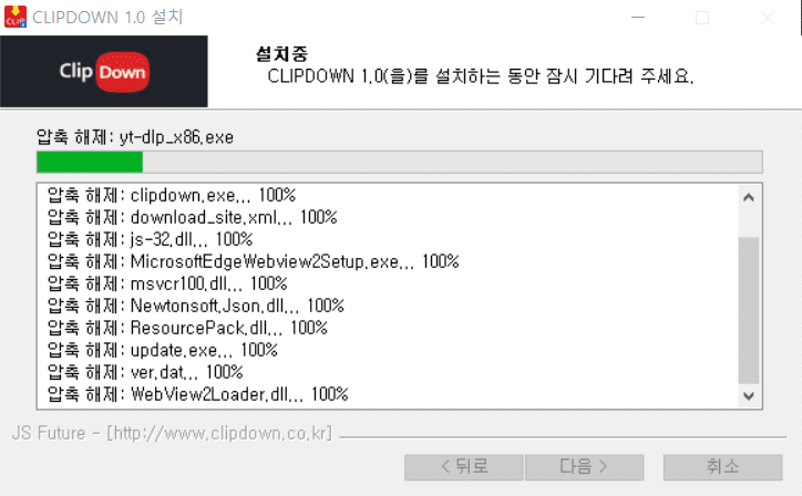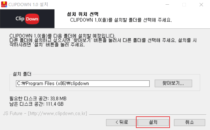 위치 설정이 끝났다면 '설치' 버튼을 클릭하면 클립다운 프로그램을 설치할 수 있습니다.