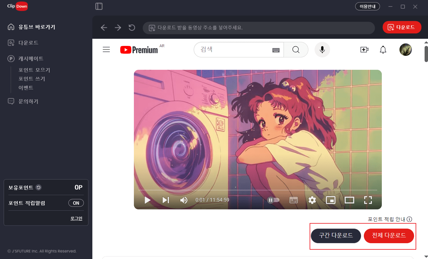 전체 다운로드는 영상 전체를 다운로드 받습니다.