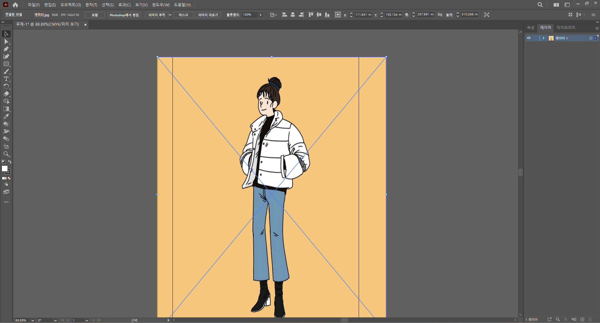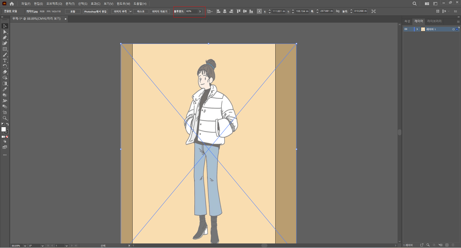 일러스트에 처음 이미지를 불러오면 이미지가 움직일 수 있고, 너무 진한 것을 확인할 수 있습니다.
