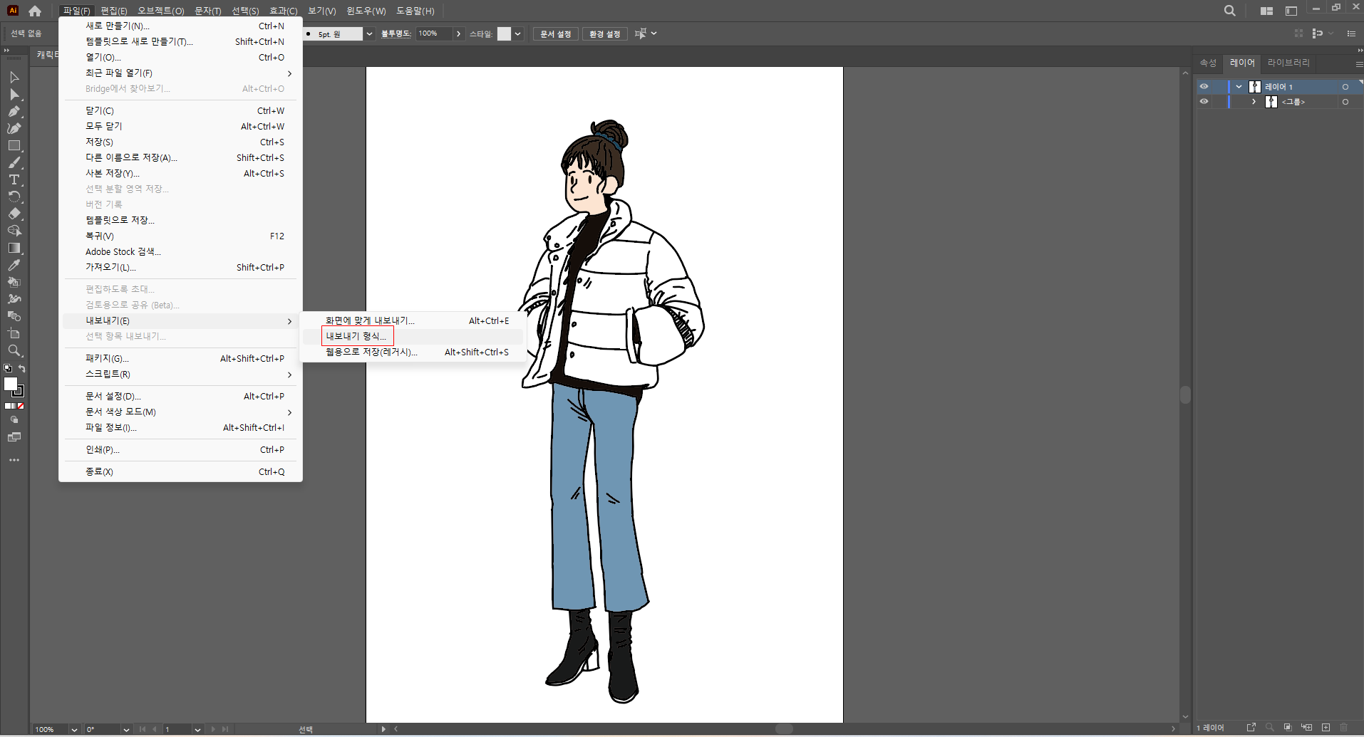 이미지를 내보내는 방법은 '파일 - 내보내기 - 내보내기 형식'에서 찾을 수 있습니다.