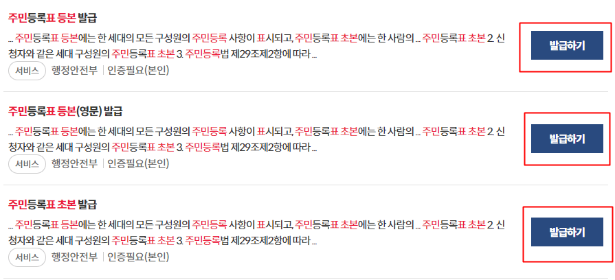 1. 검색 창에 "주민등록 등본" 검색