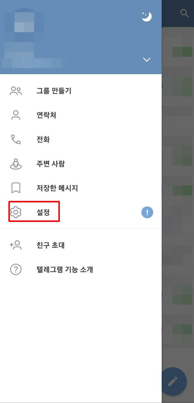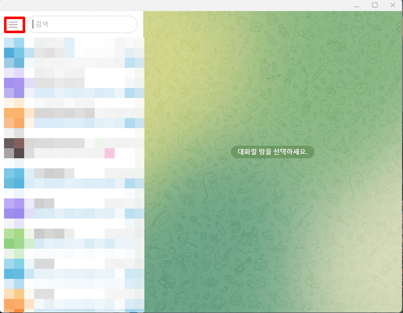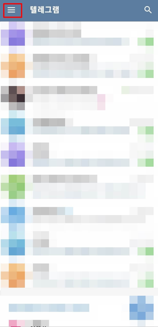 1. 먼저 모바일 텔레그램의 좌측 상단에 있는 '메뉴' 버튼을 클릭하여 '메뉴창'을 열어줍니다.