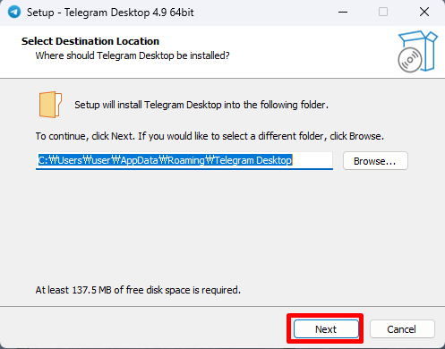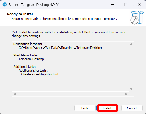 텔레그램을 어디에 설치할 것인지를 선택합니다.