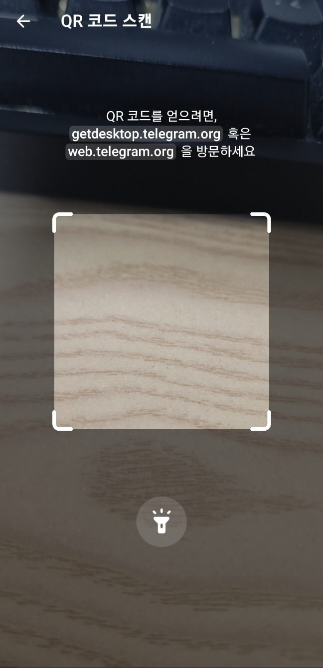 5. 'QR 코드 스캔' 화면이 제공되면, 처음 PC에서 제공된 QR코드를 스캔합니다.