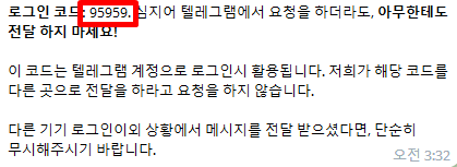 3. 모바일 텔레그램에서 '로그인 코드'를 확인합니다.