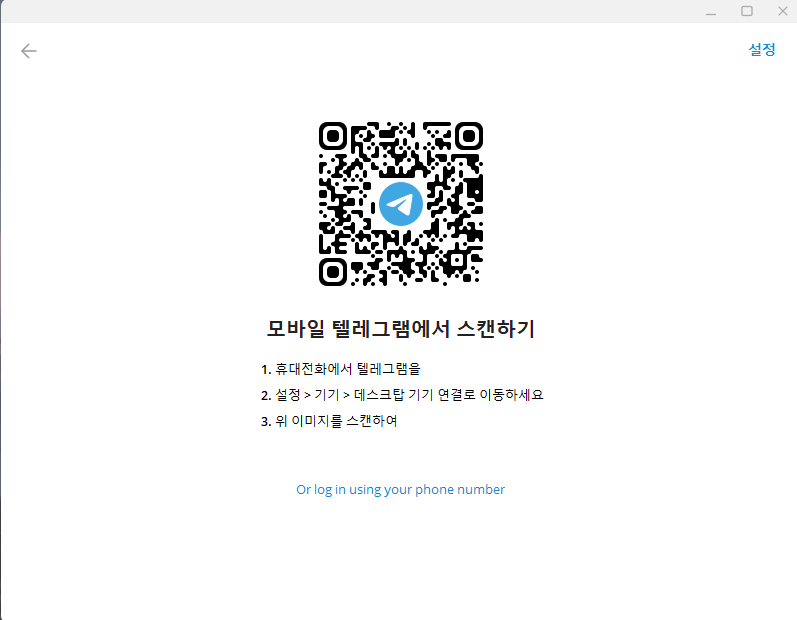 PC 버전 텔레그램 로그인 방법은 'QR코드 로그인', '휴대폰 전화번호로 로그인' 2가지 방법이 있습니다.