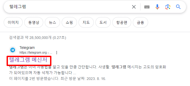 인터넷 검색창에 '텔레그램'을 검색합니다.