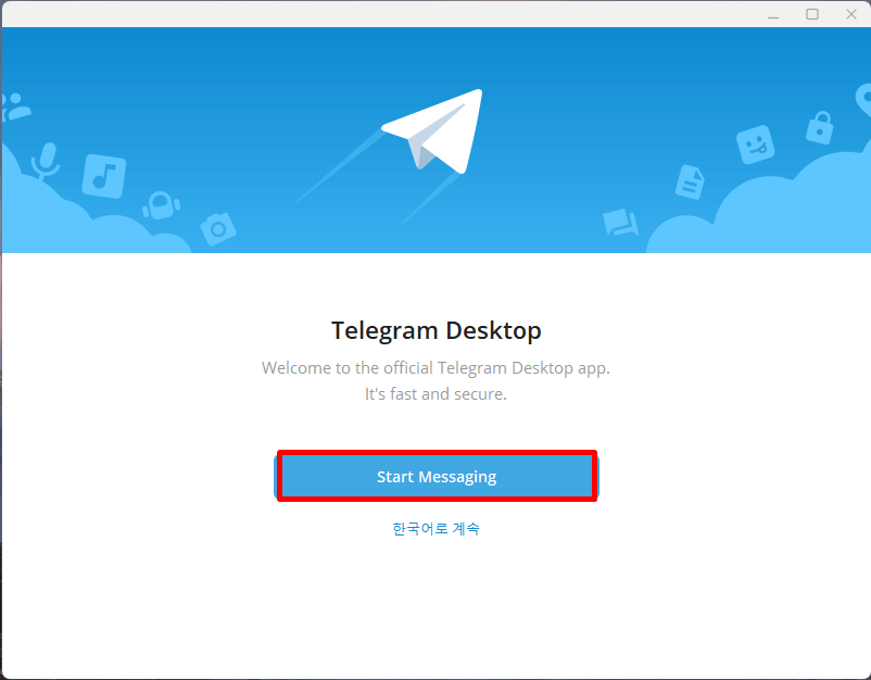 텔레그램의 설치가 끝나면 텔레그램을 시작할 수 있습니다.
