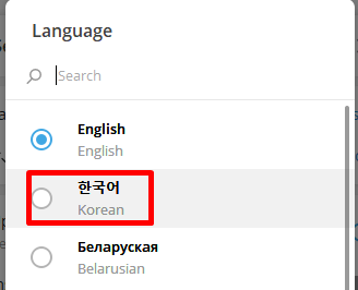 해당 화면에서 한국어로 설정할 수 있습니다. (가장 편한 방법)