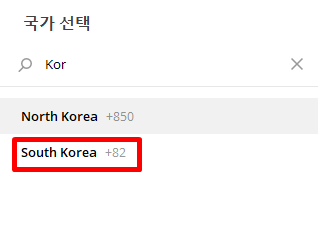 1. 국가('South Korea')를 선택합니다.