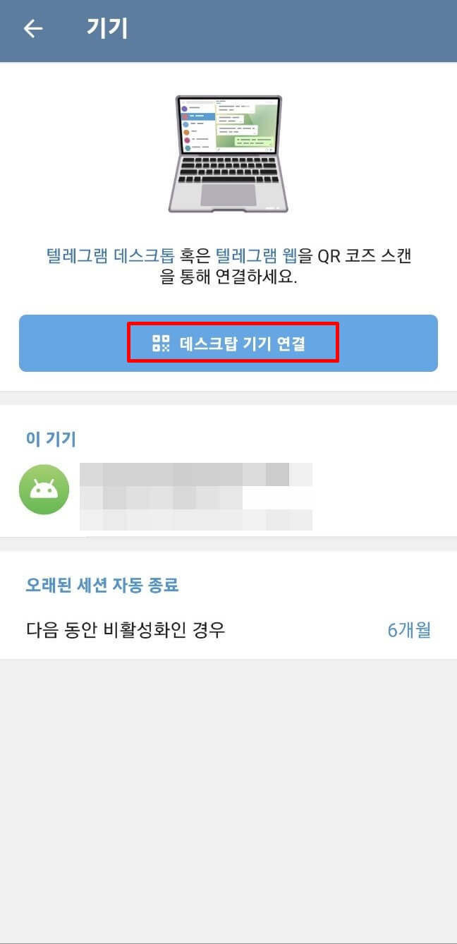 4. '데스크톱 기기 연결' 버튼을 클릭하여 'QR 코드 스캔' 화면을 열어줍니다.