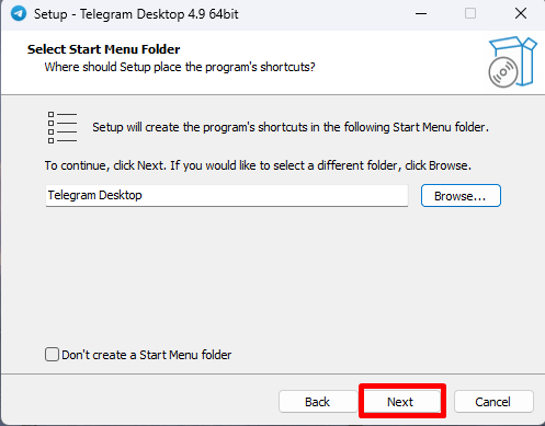 아래의 이미지는 시작 메뉴에 텔레그램 바로가기 생성 여부입니다.