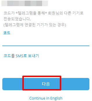 4. 로그인 코드를 입력한 뒤, 다음 버튼을 클릭하면 로그인할 수 있습니다.