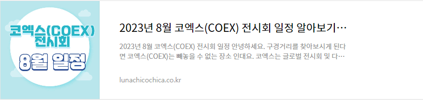 킨텍스와, 코엑스의 전시회도 정리해 두었으니, 이 포스팅과 함께 구경하시면 좋을 것 같습니다.